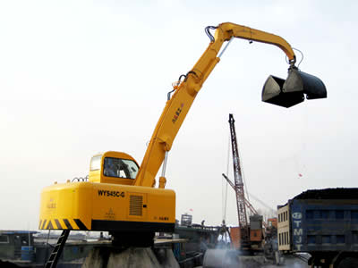 WYS42C-G型電動(dòng)液壓固定式疊臂抓料機(jī)的回轉(zhuǎn)、卷?yè)P(yáng)、變幅及抓斗開(kāi)閉作業(yè)等全部采用電動(dòng)液壓驅(qū)動(dòng),先導(dǎo)控制。具有作業(yè)平穩(wěn)、各動(dòng)作可無(wú)級(jí)調(diào)速;同等作業(yè)效率下可比內(nèi)燃機(jī)驅(qū)動(dòng)節(jié)省60%能耗;司機(jī)室安裝冷暖兩用空調(diào)、多向調(diào)節(jié)座椅,作業(yè)環(huán)境舒適;配裝不同的液壓抓斗后均有自重小、抓取力大,對(duì)沙石、煤等散裝原料進(jìn)行抓取作業(yè)。